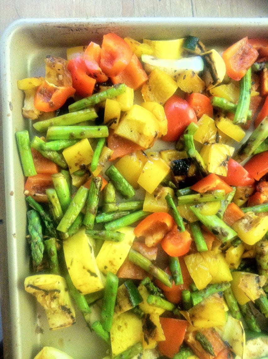 Throw some veggies in the oven to roast! I’m making a big roasted vegetable chopped salad for lunch 🙂
