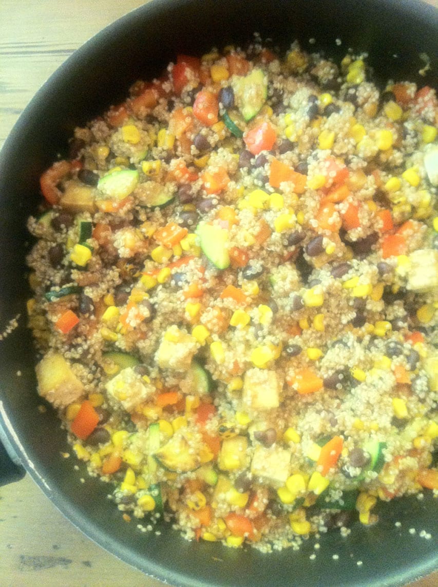 2:00pm. And then it’s time to move onto dinner! I usually make a few things, and then they all get packed up and left in the fridge so they can be eaten later that night when it’s dinner time. Here’s one of the options for that night: Cowboy Caviar Quinoa Salad. I served it with a cilantro pesto too!