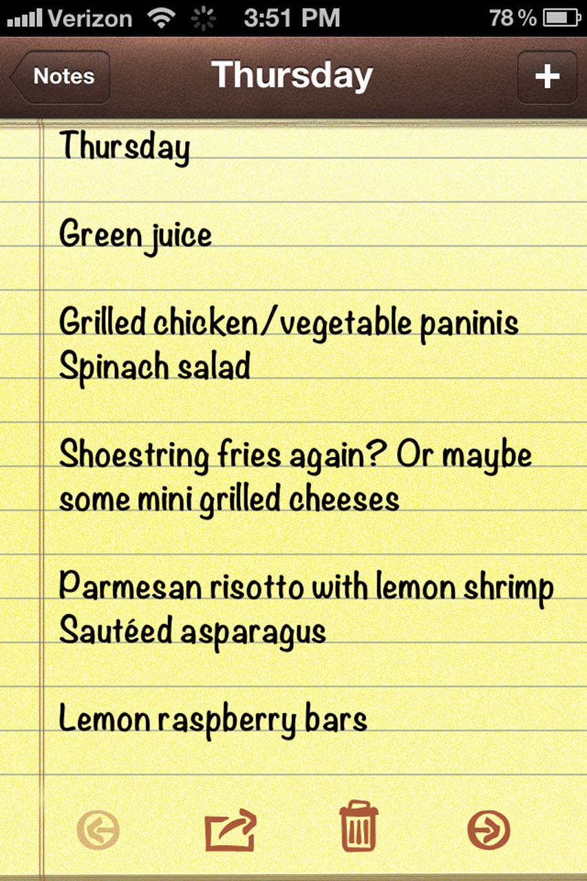 Make a grocery list for whatever I planned on cooking for my clients that day!