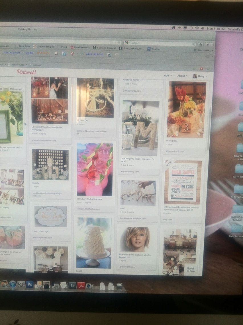8:00pm. Mandatory pinterest addiction time. I must spend at least an hour a day on pinterest. It’s like a drug. I can’t be stopped. Most of that time is spent pinning wedding stuff. How people planned a wedding pre-pinterest is just beyond me. It’s seriously the best tool ever.