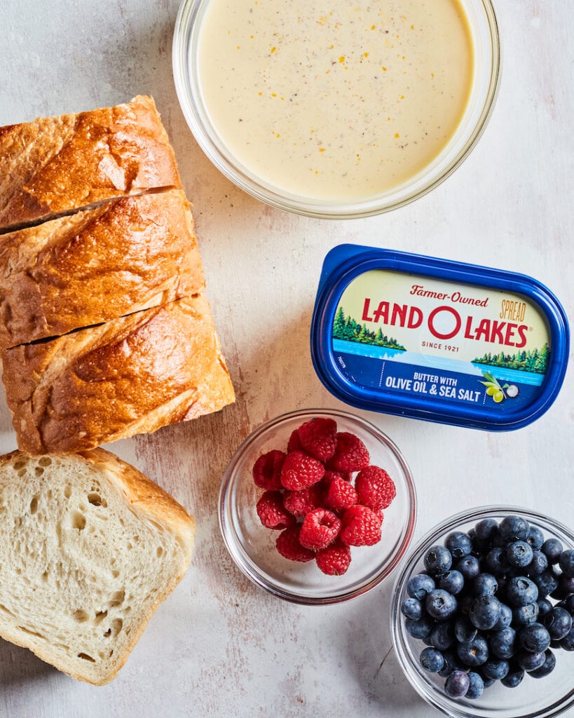 French Toast was always a mega-hit in our house growing up! Itās one of those meals that makes any holiday weekend extra special, and this Caramelized French Toast with a Berry Compote is truly perfection. Hereās the situation! First you need the amazing Land O LakesĀ® Butter with Olive Oil & Sea Salt!! You might be thinkingā¦. Olive Oil & Sea Salt in your French Toast? Hell, yes. It adds so much extra flavor and makes the perfect caramelized bread. Youāre also going to need fresh berries. I used raspberries and blueberries but if you want to add strawberries, blackberries or pitted cherries⦠be my guest! All thatās left is to toast off some THICK slices of country bread and you are in business for a lovely, leisurely weekend brunch at home.