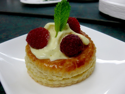 Creme Anglaise Ice Cream in Puff Pastry with fresh berries – after tonight I am thrilled that I asked for an ice cream maker for my birthday because this ice cream was unbelievable! A few of us did a taste test between this and store bought ice cream and it wasn’t even a competition. The Creme Anglaise is light and packed full of flavor and you can tell that it was made with love!! This was served over a puff pastry, which we made last week and it was so light and fluffy! I can’t wait to make this for all my friends and family 🙂