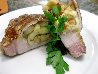 Baked Pork with Dried Fruit Stuffing. Pork can be tricky at times and some people aren’t crazy about it because once you over cook it and it dries out it is no good. This pork was cooked just the right amount of time and it was tender and juice and fabulous! The dried fruit and homemade stuffing was so yummy and you couldn’t get enought of the fabulous sauce!