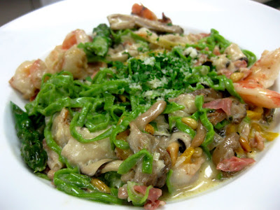 Angel Hair pasta with Wild Mushroom Sauce, Shrimp and Asparagus