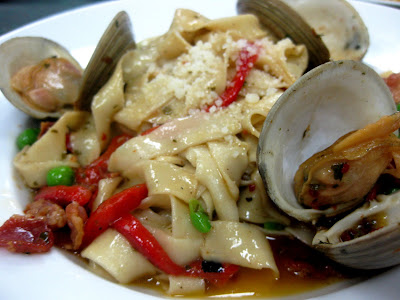 Pasta with the Clam Sauce and Roasted Red Peppers