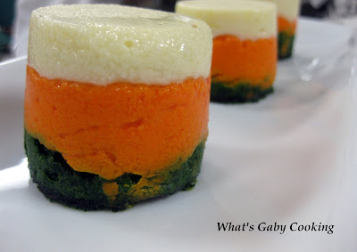 These pretty little things are Timbales of Vegetables. Layers of Spinach, Carrot and Cauliflower… doesn’t that look gorgeous!