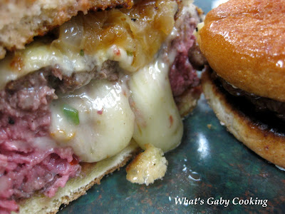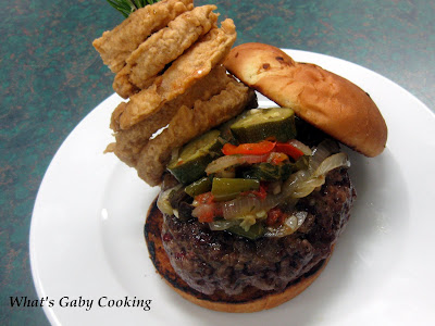And last but certainly not least… a 12 oz Burger topped with Ratatouille and beer battered onion rings stuffed with… you guess it…. cheese! Most of my classmates used Blue Cheese… but not this girl! I used Pepperjack – so delicious!