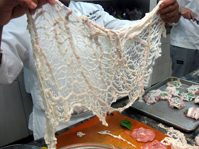 I've read about french chefs using caul fat before, but to look at it – ewwww!! Thanks for sharing all the pictures. I have to say that I would understand if this wasn't your favorite week at culinary school ; )