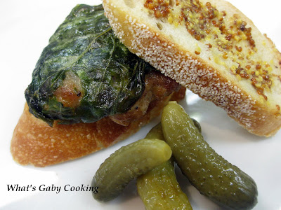 This is a Pork Basil Crepinette… served with some country style bread, mustard and a few baby pickles.