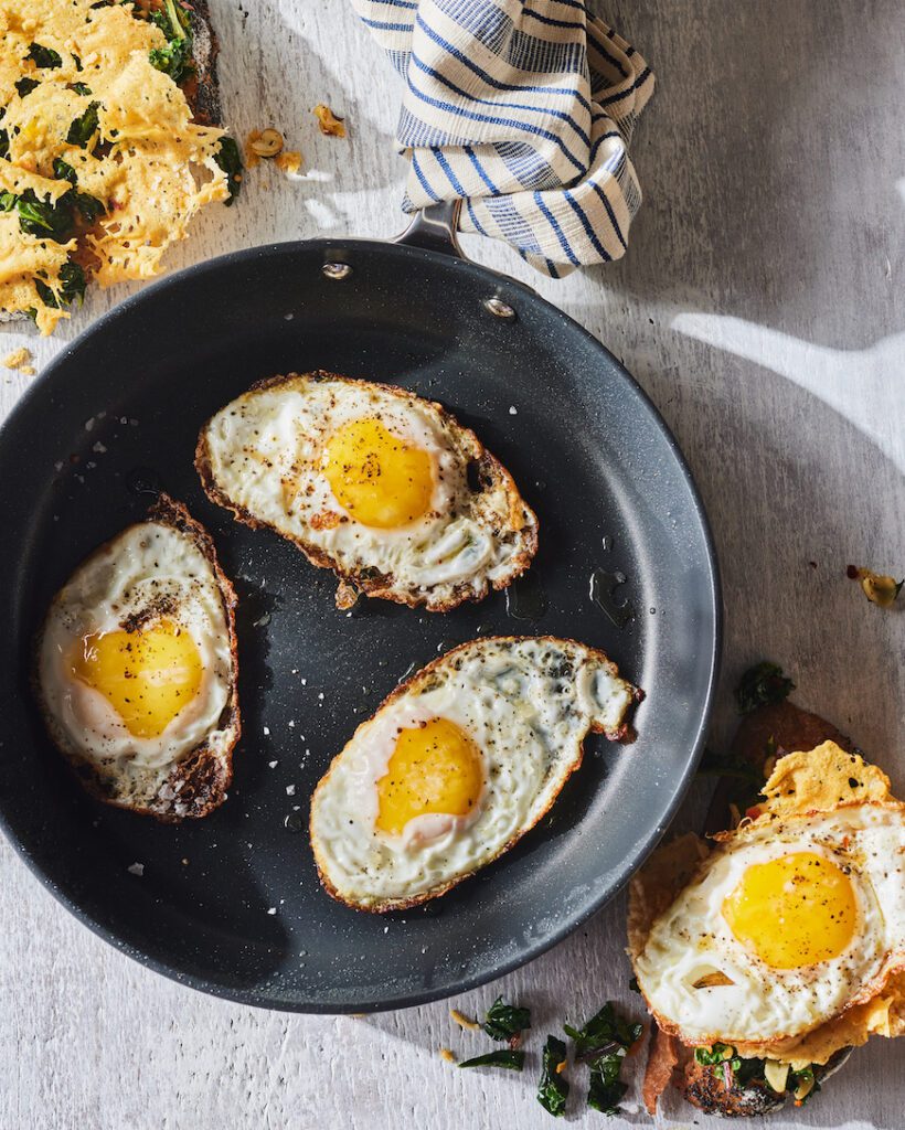 Ready for a fun and decadent weekend breakfast that will rock your world… Parmesan Frico Eggs with Greens ON TOAST!!