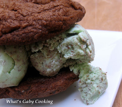 Oooh – the hubs loves mint ice cream and he loves ice cream sandwiches. How much would he love me if I put them both together like this? 8-D