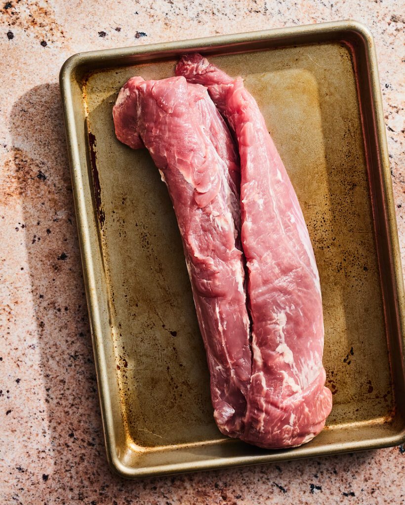 - 1 1/2 pounds boneless center cut pork tenderloin, cut into 1/4-inch thick strips, about 3 inches long