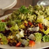 Drizzle the dressing on top of the salad, a little bit at a time until properly dressed. Season with extra salt and pepper as needed. Top with guacamole and serve.