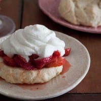 To assemble, place a shortbread biscuit on a plate. Top with a heavy spoonful of the strawberries and then top with cream. Serve immediately.