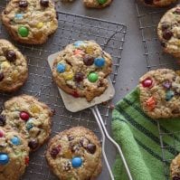 Add the M&M's, chocolate chips, dried cranberries and dried apricot and mix for a few seconds until just incorporated.