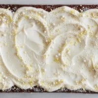 Spread the icing over the cake, lots and lots of swoops, and serve. (You can also keep the cake in the fridge for up to 1 week)