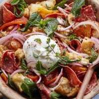 This Roasted Pepper Panzanella is hands down on the best Panzanellas out there! Meat, cheese, bread, peppers... what more could you want!