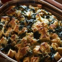 Remove the plastic wrap from the baking dish and cover with aluminum foil. Bake for 20 minutes. Uncover and continue baking until the top is browned and the strata is cooked through, 40 to 50 minutes more. Serve 12.