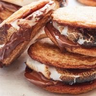 Once the cookies are entirely chilled, take 2 cookies and on the bottom of one, add a few pieces of your favorite chocolate and a large warm toasted marshmallows. Top with the other cookie and sandwich together so the chocolate melts. Serve immediately