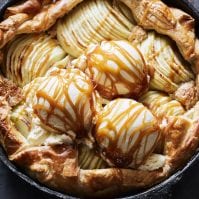 Bake until the pastry is golden brown and the apples are tender, 40 to 45 minutes. Serve warm or at room temperature with a scoop of ice cream and salted caramel sauce on top. Serves 8.