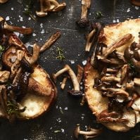 Remove the baking sheet from the oven and top each piece of bread with a spoonful or two of the mushroom mixture. Sprinkle with Maldon salt and pepper and extra thyme and serve immediately.
