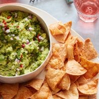 Add the vegetable oil to a heavy bottom pan over high heat, about ½ inch deep. Once the oil is shimmering, add a few of the tortilla triangles at a time and fry for about 1 minute on each side until they are crisp.