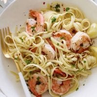 Add shrimp and sauté until they just turn pink, 3 to 4 minutes depending upon their size. Stir in the parsley and lemon juice and add cooked pasta. Toss to combine. Serve with additional lemon wedges