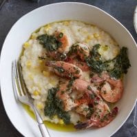 - Remove risotto from heat and stir in Parmesan and remaining tablespoon of butter. Cover and let stand for 5 minutes. Uncover risotto, stir and season to taste with salt and pepper. Immediately before serving, stir in the mascarpone cheese. Top with grilled shrimp and a spoonful of salsa verde.