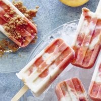 Spoon a tablespoon of the peach mixture into the bottom of each ice pop mold. Layer with a bit of the cream and another layer of the streusel. Continue layering until all the molds are evenly filled. Freeze until set, about 4-5 hours. After 30 minutes of freezing time, place a wooden craft stick in each pop, and continue freezing.