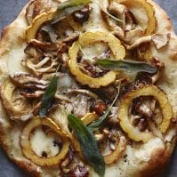Bring a medium sauté to medium high heat with the olive oil. Add the assorted mushrooms and sauté for 8-10 minutes until golden. Season with salt and pepper and set aside. In the same pan, add the sliced delicata squash with some extra olive oil and pan sear until cooked. Season with salt and pepper and set aside.