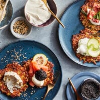 Keyword: Latkes, Latke recipe, crispy potato Latkes, Latkes with topping bars, creative toppings for Latkes, fun Latke toppings, Latke bar