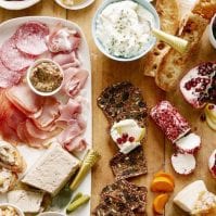 Arrange the toppings on a large platter or table and serve with the crackers and bread