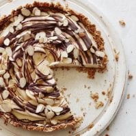 Transfer the pastry cream into a bowl and chill for 30 minutes. Once chilled, pour the pastry cream into the chilled tart shell. Arrange banana slices on top and drizzle with the melted chocolate and sprinkle with the slivered almonds