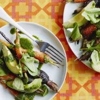 Toss the roasted carrots with 1/2 cup of the cilantro mixture.