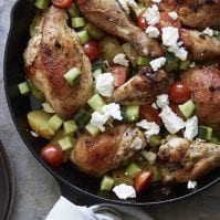 Everything gets piled into a big cast iron skillet, seasoned with a marinade so addicting you’ll want to drink it, and roasted until the chicken and the potatoes are golden, crispy and pure perfection!