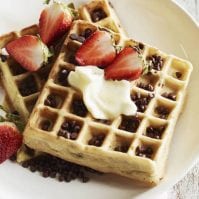 Serve with butter, extra chocolate chips, syrup or strawberries