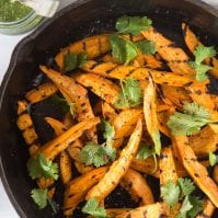 Grill sweetpotatoes for 4-5 minutes per side until grill marks appear and then remove sweetpotatoes from grill and set aside. These can be served warm or at room temperature with the dipping sauce.