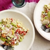 Divide the cooked quinoa into 2 bowls or tupperware containers.
