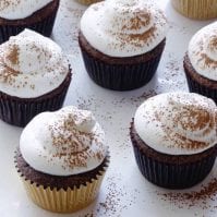 Prepare 2 12-spot cupcake tins with cupcake liners. Fill each cupcake liner ½ way with the cake batter. Add a GODIVA signature holiday truffle and then transfer the cupcake tray into the oven and bake according to the package directions.
