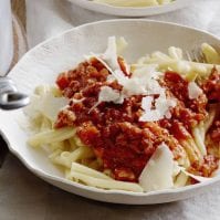 This Chicken Bolognese is one of my favorite meals these days. It’s quick and easy to whip up on any night of the week and both kids and adults love it.