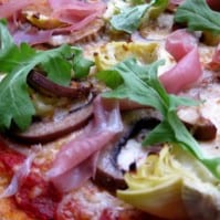 Roll the dough, add your sauce, then the mushrooms, artichoke and cheese and put it into a 500 degree oven on your pizza stone for 10 minutes until the crust and cheese starts to brown. Once done, remove from oven and add the Prosciutto and Arugula and finish with salt and pepper. Then all you have to do is slice up your beautiful pie and enjoy!