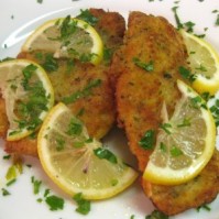 In another skillet add 1 tbsp of butter and then the lemon juice, wine, lemon halves, salt, and pepper. Bring this to a boil and then let reduce for 3-4 minutes. Once reduced, remove from heat and whisk in the other 2 tbsp of butter. Remove the chicken from the oven and serve each breast with a few spoonfuls of the sauce, lemons and fresh chopped parsley.