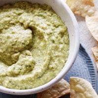 Preheat oven to 450 degrees. Remove the husks from the tomatillos. Rinse under warm water well and wipe clean. Cut the tomatillos in half and place into a baking pan. Roast for 20 minutes until they are tender.