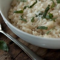 - Once the rice is just tender, add the Goat cheese and lemon juice and combine. Remove from heat and season with salt and pepper to taste and sprinkle with the Thai Basil.