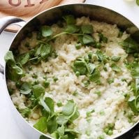 Creamy and cheesy this rice dish can take on any flavor – today it’s lemon and peas!