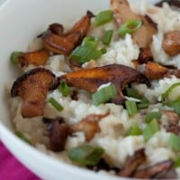 - Once the rice is just tender, add the Parmesan and mascarpone cheese and combine. Add the previously sauteed mushrooms and carefully combine into the risotto. Remove from heat and season with salt and pepper as well as the green onions and serve.