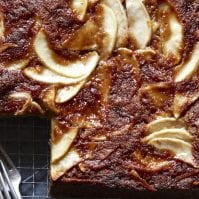 Spray a 9x9 baking dish with baking spray and line with parchment paper. Transfer the batter into the baking dish and bake in a preheated oven for 50-55 minutes, or until a knife can be inserted in the center and comes out clean.
