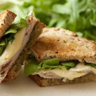 Place into panini press and close. Let it toast for about 5 minutes until its golden brown on the top and bottom. Remove, slice and serve.