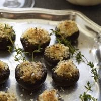 - In a small bowl, combine the rest of the ingredients and about 2 tablespoons of olive oil and season the mixture with salt and pepper. Fill the mushroom cavity with a small scoop of the bread crumb mixture.