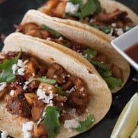 Top each tortilla with the mushroom, potato chorizo mixture and any desired toppings and serve immediately.